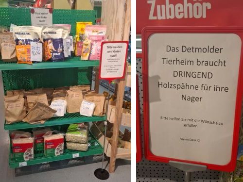 bekommen wir vom Detmolder Fressnapf, der immer wieder zu Spenden für unsere Tierheimtiere aufruft.