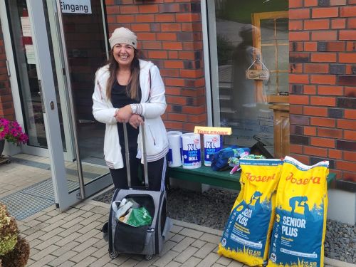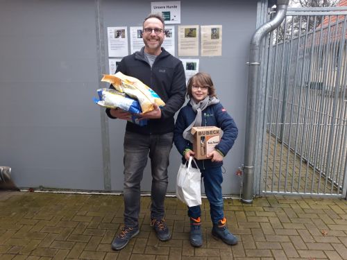 durfte unser Tierpflegehelfer Fabian Dux beim Bielefelder Hunter-Shop liebe Präsente und Spenden für unsere Tiere abholen.