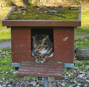 Auf unserer Katzenstation fühlte sich Scotty nicht wohl, es drängte ihn in die Freiheit, und so haben wir ihm nach der Kastration auf unserem Gelände nach draußen gelassen. Scotty gesellte sich schnell zu unseren anderen Hofkatzen, wanderte nicht ab, sondern nimmt durchaus interessiert, aber noch aus der Distanz am Tierheimleben teil.