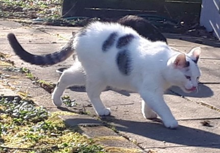 Weil er sich nach Eigenständigkeit und Freiraum sehnte, haben wir Alex nach draußen gelassen, und er darf zukünftig als Hofkater auf unserem Gelände leben - mit Zugang zu unserer „Katzenvilla“, die ihm als warmer Unterschlupf besonders gut gefällt. Alex beobachtet das Geschehen zwar noch aus sicherer Distanz, rückt aber ganz allmählich näher und holt sich sogar schon Leckerchen ab.