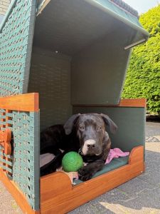 Inzwischen fährt Butch fast jeden Tag mit Herrchen ins Büro, liebt es mit seiner Freundin Leni im Garten zu toben, ausgiebige Wald-Spaziergänge zu unternehmen und sich von uns im kuscheligen Körbchen kraulen zu lassen. Man könnte sagen: Er ist ein fröhlicher junger Hund und ist voll und ganz bei uns angekommen. Nun beginnt allmählich die spannende Phase der Pubertät. Er testet immer mehr seine Grenzen aus.