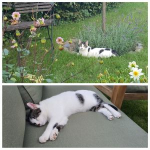 seit dem 29.05.2024 ist die kleine Lotti (vorher Sansa) nun bei uns. Von Sekunde 1 hat sie unser Herz erobert! ist eine sooo liebe, verschmuste und sehr anhängliche Katze! Seit anderthalb Wochen ist Lotti nun auch draußen zu finden. Neugierig, aber immer in unserer Nähe, erkundet sie die für sie völlig "neue Welt". Müde von den vielen Eindrücken kommt sie gerne am Nachmittag zu einem Nickerchen auf die Gartenliege.