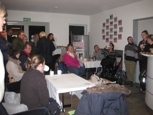 Eigentlich im Freien mit Feuerkorbromantik geplant, zwangen uns Nieselregen und Schmuddelwetter nach drinnen, was zwar die draußen gemachten Fotos verderben, nicht aber unsere gute Laune trüben konnte.