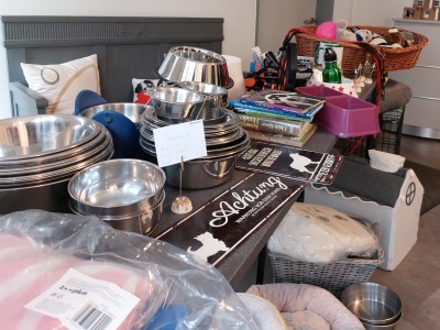 Vor allem die hochwertigen Hundekissen und Körbchen waren begehrt, und nach erfolgreichem Stöbern ließen sich unsere Besucherinnen und Besucher den herzhaften Kaffee und selbstgebackenen Kuchen schmecken.