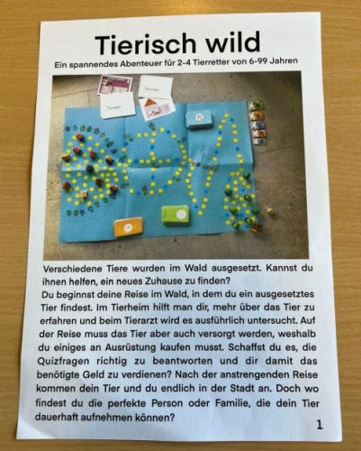 und hat an drei Projekttagen im Themenbereich Tierschutz ein kreatives und sehr gut durchdachtes Brettspiel mit dem Titel „Tierisch wild“ entwickelt, das inzwischen von ihrer Klassenlehrerin Marianne Wolf beim Wettbewerb eingereicht wurde (https://www.bpb.de/lernen/angebote/schuelerwettbewerb/334416/die-aufgaben-2023/).