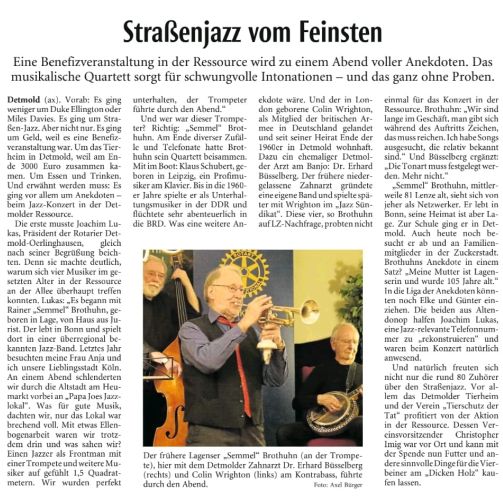 Wir bedanken uns herzlich bei den teilnehmenden Rotary Clubs, bei InnerWheel, bei der Ressource Detmold und bei allen Spenderinnen und Spendern und können der Lippischen Landeszeitung nur beipflichten: Das war wirklich vom Feinsten!