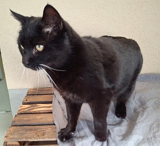 Aufgrund schwerer Schäden der Wirbelsäule leidet Erwin an Ataxie der Hinterhand und hat infolge falscher Belastung außerdem bereits eine Arthrose entwickelt. Er läuft, klettert und springt zwar, soweit es seine Hinterbeine zulassen, ist aber einem Leben als Freigänger nicht gewachsen. Zudem ist Erwin vermutlich Allergiker und bekommt deshalb bei uns spezielles Futter.