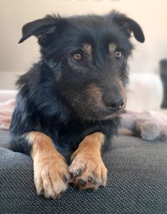 Nun ist Rupert schon fast einen ganzen Monat bei uns und hat sich super eingelebt. Er ist total menschenbezogen, hat die Couch für sich entdeckt und darf sogar mit im Bett schlafen. Mit Besuch kommt er perfekt klar und tritt jedem freundlich gegenüber.