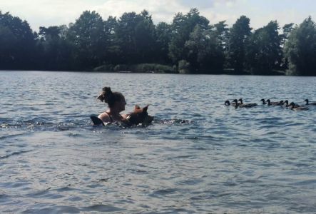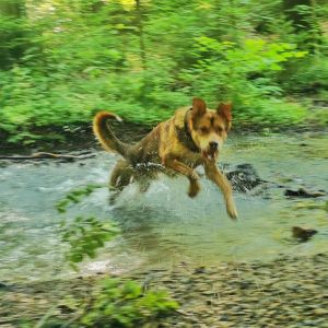 Ich sitze hier gerade mit ihm am Wasser, er läuft frei und beschäftigt sich richtig kasperig seit einer Stunde selbst und bringt mich dabei immer wieder zum Lachen. Durch seine Tollpatschigkeit und seine trottelige Art hat er mir auch sehr über den Verlust von meinem Jerry hinweggeholfen.