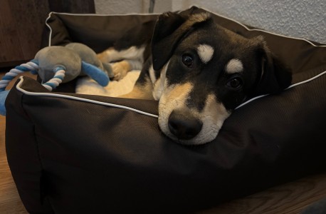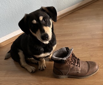 Vor zwei Wochen habe ich bei euch meine Koffer gepackt und bin in mein Für-immer-Zuhause gezogen. Mir geht es super und habe mich auch inzwischen wunderbar eingelebt. Ich bekomme jeden Tag viele Streicheleinheiten, lerne aber auch fleißig das Hunde-ABC. Damit es auch nie zu Hause langweilig wird, klaue ich gerne mal meinen Besitzern die Schuhe, damit sie hinter mir herrennen. Ich habe tolle vierbeinige Freude gefunden und genieße das spannende Hundeleben.