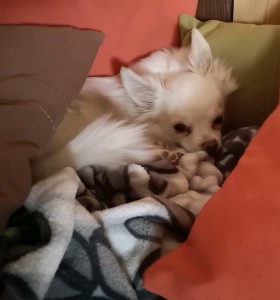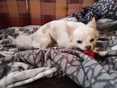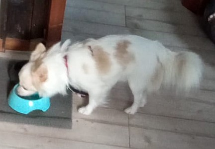 Nach vier Tagen konnte er schon ohne Leine und Geschirr im Haus sein. Shorty lässt sich ohne weiteres das Geschirr zum Gassigehen oder kurz im Garten zum Pippi machen anziehen. Gegenüber männlichen Hunden hat er noch Angst, aber Hundedamen findet er interessant! So ist er aufgeweckt, sehr neugierig, und das selbstgekochte Fressen schmeckt auch.