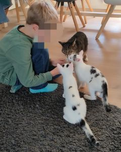 Unsere Katzenoma Lilly finden die beiden ganz toll, und wenn die zwei nicht zu viel Wirbel verbreiten, mag Lilly sie auch. Unser Sohn ist auch total happy mit den beiden. Sie toben, spielen und kuscheln viel zusammen.