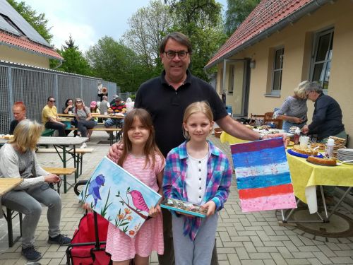 Die Sonne lachte vom Himmel, viele Gäste und alte Bekannte fanden den Weg zu uns, und der selbstgebackene Kuchen erhielt sehr viel Zuspruch. Da tat auch ein zwischenzeitlicher Hagelschauer der fröhlichen Stimmung keinen Abbruch.